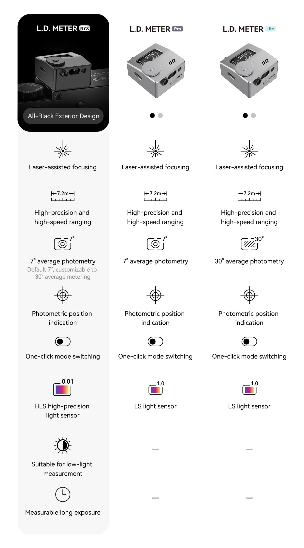 “ It’s accurate metering, small body, cold shoe, accuracy meter, and even laser rangefinder. Yes, this little light meter comes with a laser rangefinder telling you distances up to 50m away. This is many used for folding cameras with not through the lens focusing or rangefinder built in. ”